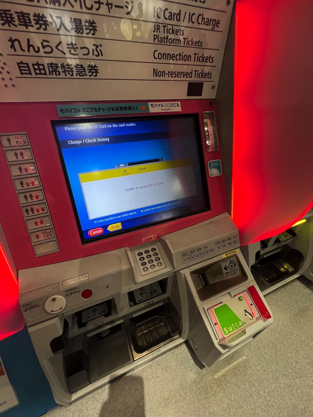 I‘ve got good news and bad news for you. Bad news first. The machine compatible for this type of top up (or “charge”) is NOT on every train station, so make sure to look for the machine that allows iPhone top up/charge/load via cash (Japanese Yen ¥).